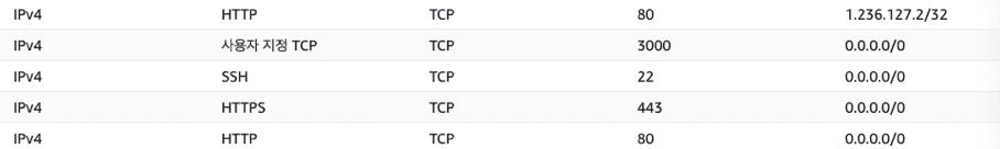 처음에는 http만 0.0.0.0으로 모두가 들어올 수 있게 해주었다 실패! 그럼 https도,,? 실패! 아 내 IP 주소를 설정 안 해줘서 그런가?! 실패! 아 오케이,,! 진짜 알았다,, 포트번호 3000번 안 열어줘서 그랬음!! 실패!