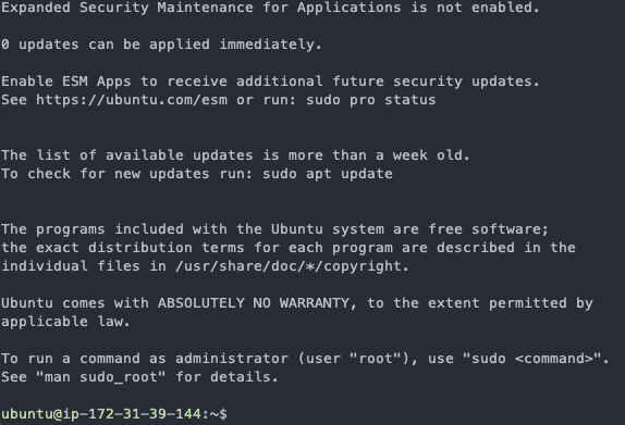 ubuntu에 접속하여 nodeJS를 설치해주었다.