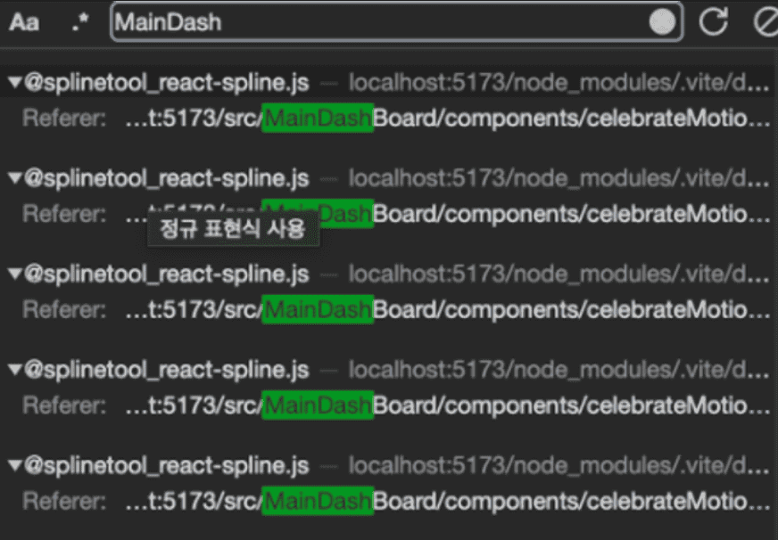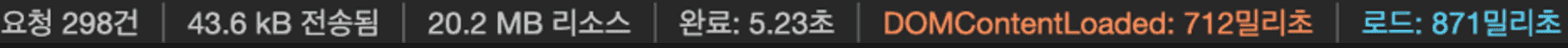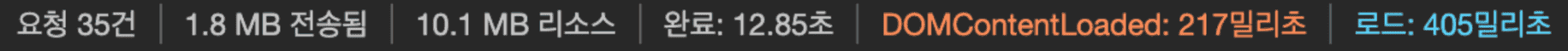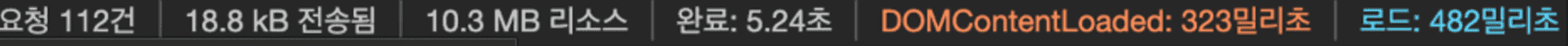 네트워크 창에 검색을 해보면, 이와 같이 상관 없는 파일들이 많이 검색 되었다. 쓸데없는 요청이 많았다.
