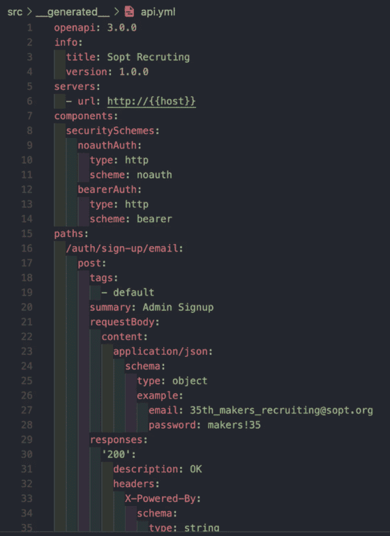 그럼 하나의 json 파일이 생성된다. 이를 Postman to OpenAPI 에 업로드한 뒤 변환하기를 누르면 OpenAPI yml 파일이 생성된다.