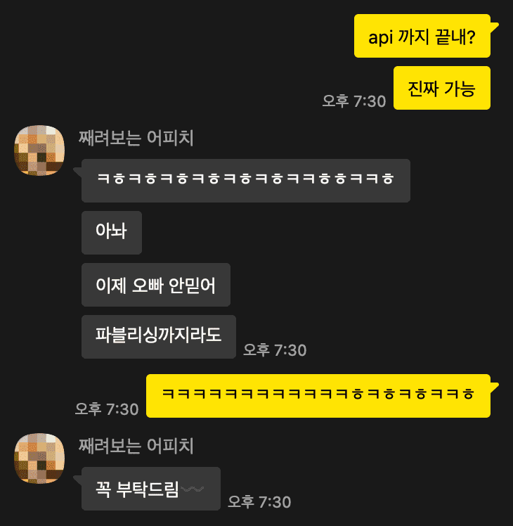 진짜 오늘까지는 API를 다 붙이려고 하였다. 왜냐면 내일은 약속이 있기에, 또 어떤 일이 발생할 지 모르기 때문에 미리미리 해두고 싶었다.