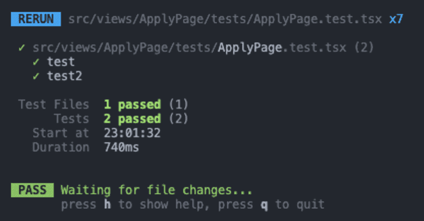 아직 msw 설정을 하지 않아 데이터가 없어 expect는 되지 않지만 위와 같이 할 경우 성공적으로 테스트가 진행됨을 확인할 수 있었다.