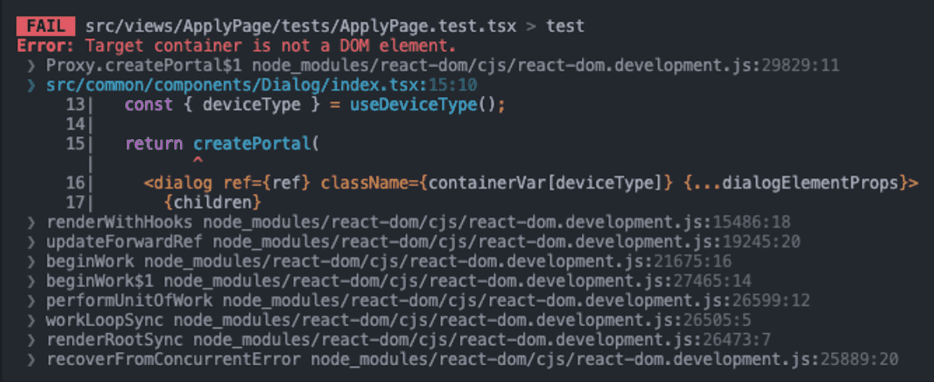 따라서 test하기 전에 똑같이 portal이 생성되는 div를 만들어 주면 됐다.