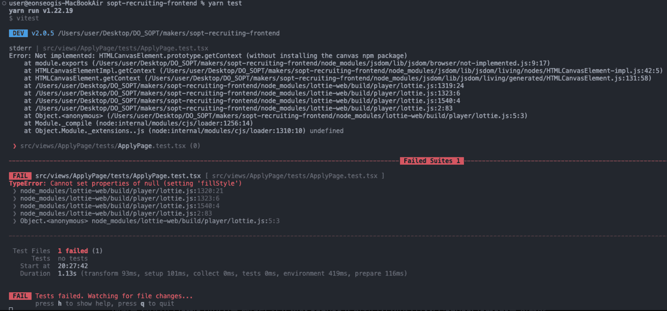 추후에 lottie 관련 테스트 하는 중 에러가 발생하면 vite-canvas-mock 라이브러리의 설치를 고려해봐도 좋을 거 같다.