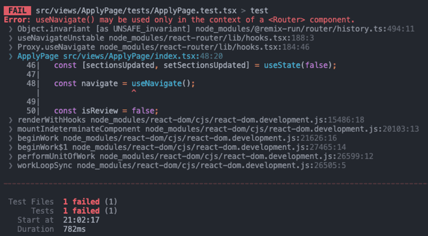 현재 custom render에는 <Router>가 없어서 useNavigate를 사용하지 못한다는 에러였다.